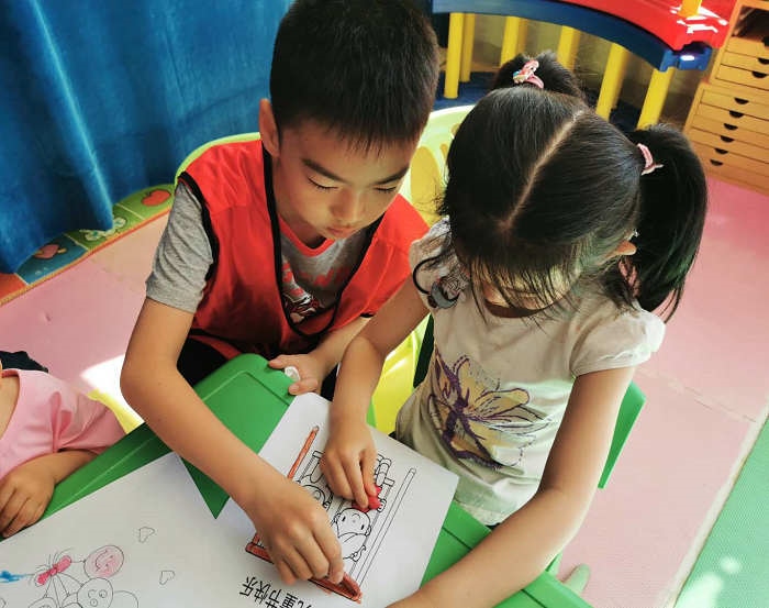 學員和家長與康復中心的孩子們一起描繪“兒童節(jié)”