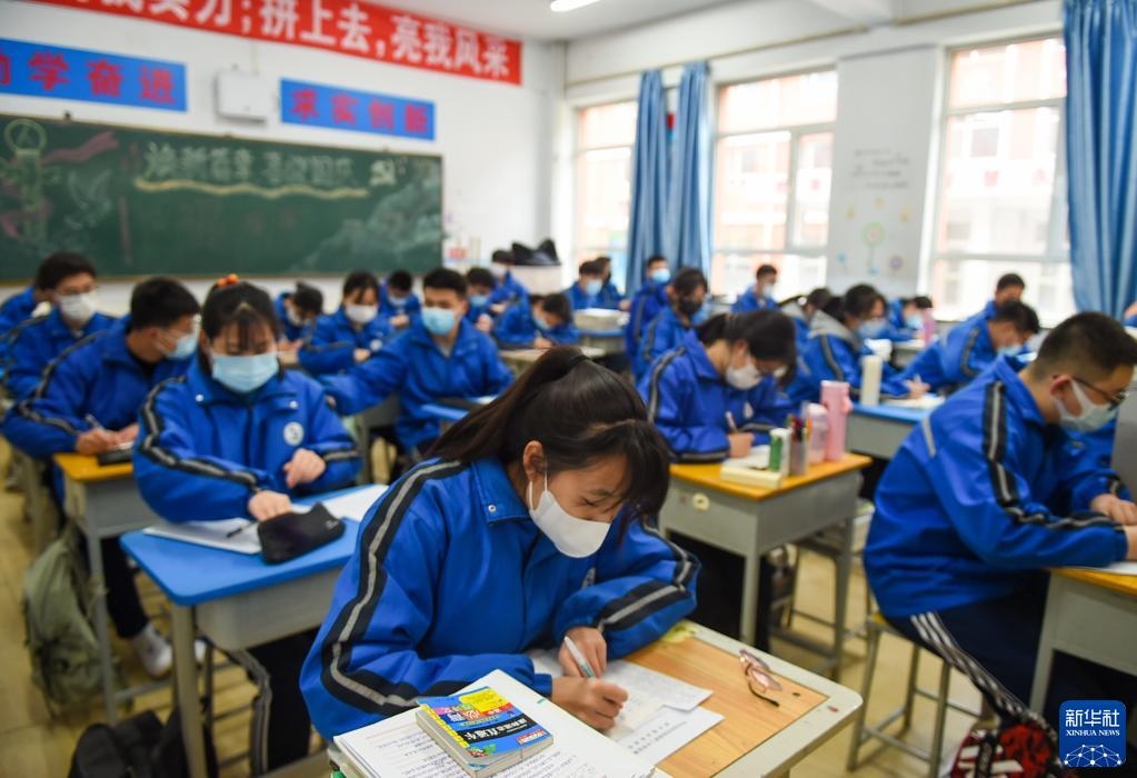 4月1日,呼和浩特市鐵路第二中學(xué)高三年級(jí)學(xué)生在教室里上課。
