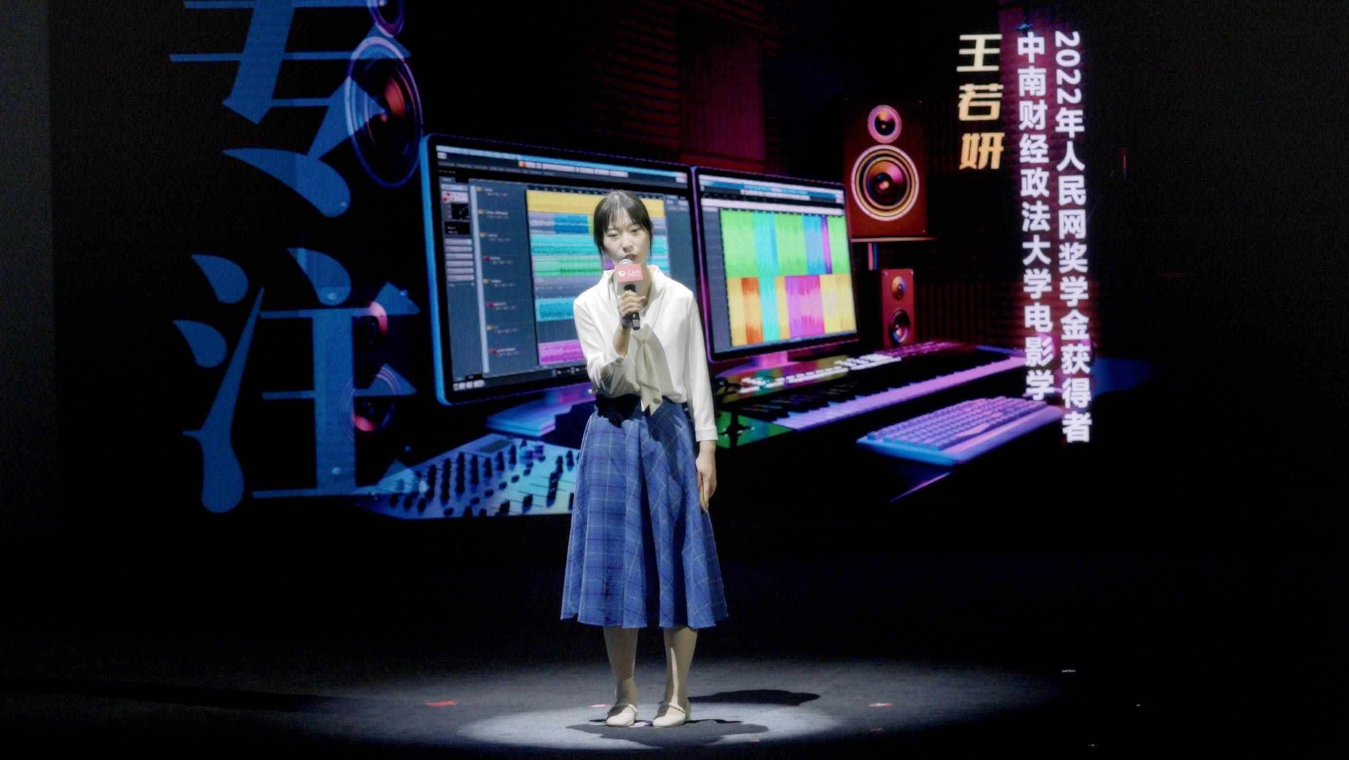 2022年人民網(wǎng)獎(jiǎng)學(xué)金獲得者、中南財(cái)經(jīng)政法大學(xué)電影學(xué)專(zhuān)業(yè)學(xué)生王若妍分享自己的故事。實(shí)習(xí)生韓華良 攝