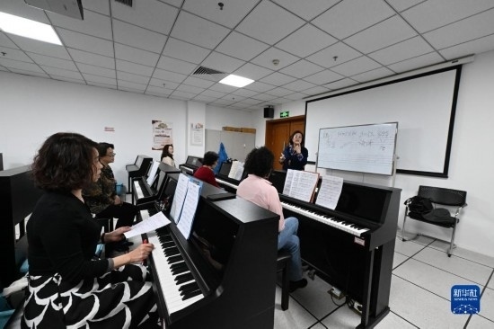 4月4日,在天津市河西區(qū)文化館,老人們在上鋼琴課。