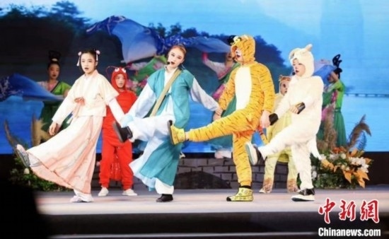 原創(chuàng)童話婺劇折子戲《游禮過橋》首演現(xiàn)場(chǎng)。江帆 攝