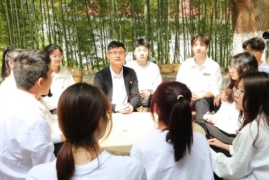 最近,該校馬克思主義學院教師宋曉龍帶著20多名同學沉浸在校內的蒼翠竹海中上起了思政課。