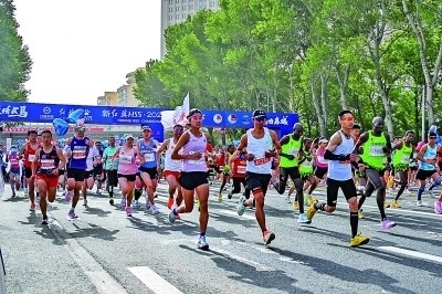 2023長(zhǎng)春馬拉松比賽上,參賽選手從起點(diǎn)出發(fā)。新華社發(fā)