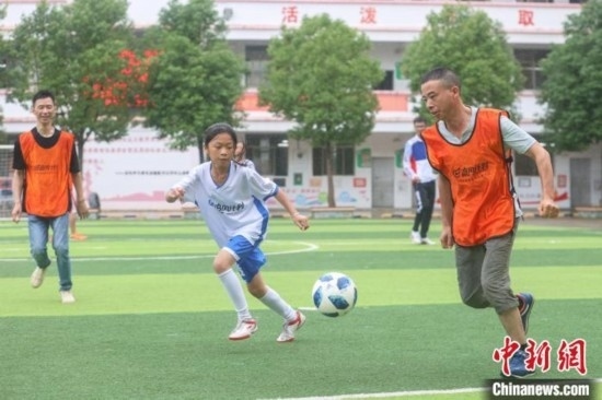 “今天第一次和爸爸踢球,我特別高興和感動。他踢得很好,還帶球過了我?guī)状?。我希望爸爸以后能多陪我踢球?!?4日,在江西贛州尋烏縣澄江中心校的足球場上,來自該校晨曦女子足球隊的隊員廖怡菱和其他四位隊員在父親節(jié)前夕,驚喜地見到了自己身在外地工作的父親,并第一次和父親一起踢球,進行了一場特別的親子足球賽。