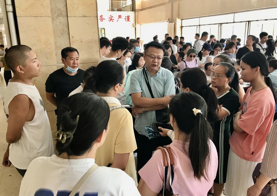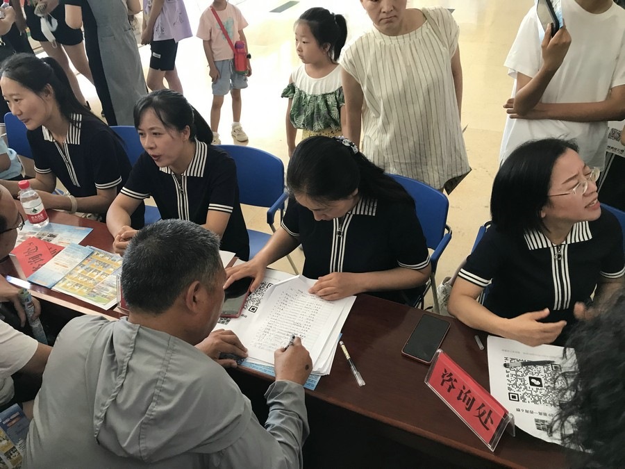 上午8:00,家長和同學(xué)們陸續(xù)走進學(xué)校。截至9:00,學(xué)校3個報告廳、教學(xué)樓二樓大廳、家長接待室、校南門家長咨詢點,共接待家長超1500人次。