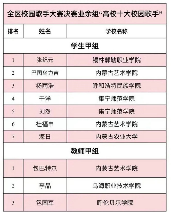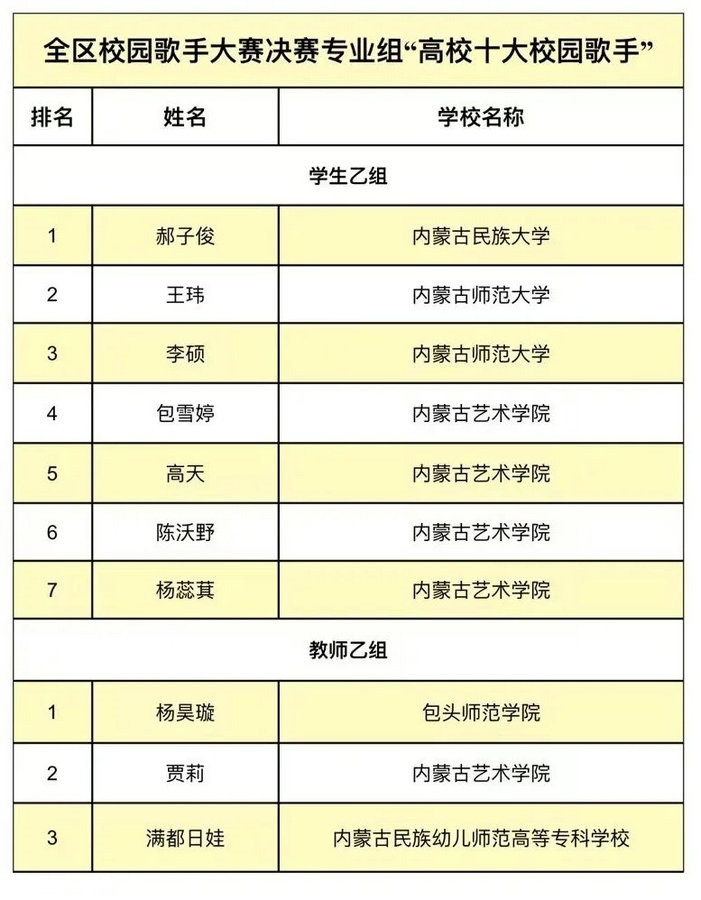2023年全區(qū)大學(xué)生藝術(shù)節(jié)校園歌手大賽自今年9月啟動(dòng)以來,經(jīng)過校級(jí)初賽、自治區(qū)復(fù)賽等層層選拔與評(píng)審,最終從來自全區(qū)46所高校上報(bào)的516份參賽作品中選出40名選手進(jìn)入決賽。經(jīng)過激烈角逐,專業(yè)組和業(yè)余組分別產(chǎn)生前10名選手獲得本次“高校十大校園歌手”榮譽(yù)稱號(hào),并于23日頒獎(jiǎng)晚會(huì)現(xiàn)場(chǎng),為獲獎(jiǎng)選手現(xiàn)場(chǎng)頒發(fā)榮譽(yù)證書和獎(jiǎng)杯。