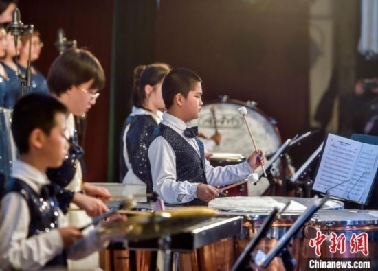 該交響管樂團成立于2014年,平均年齡10歲,是一支非常年輕有朝氣的隊伍。中新網(wǎng)記者 劉新 攝