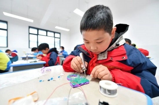2023年12月14日,在湖北省襄陽市保康縣后坪鎮(zhèn)中心學(xué)校,學(xué)生們參加電子制作競賽。通訊員 楊韜 黃玲 攝