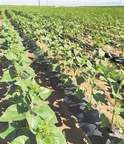 土壤經(jīng)中國農(nóng)業(yè)科學院鹽堿地改良創(chuàng)新團隊改良后,種植的食葵長勢良好。受訪者供圖