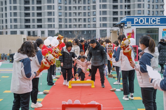 為歡迎小朋友回家,幼兒園精心布置,鯉魚跳龍門、福氣上上簽、朱砂啟智、擊鼓明智等。