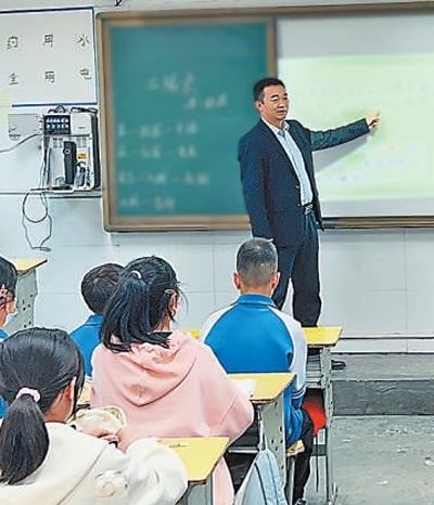八仙中學校長李強在給學生上課。本報記者 張丹華攝
