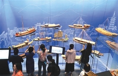 隨著暑假臨近,江蘇省揚(yáng)州市暑期游逐漸升溫,眾多游客來到揚(yáng)州中國大運(yùn)河博物館參觀游覽,感受運(yùn)河文化的魅力。圖為游客在揚(yáng)州中國大運(yùn)河博物館參觀。孟德龍攝(人民圖片)