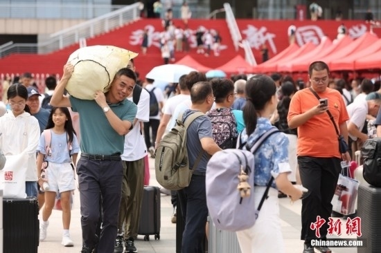8月19日,北京大學(xué)迎來2024級新生報到。圖為學(xué)生帶著家長一起報到。