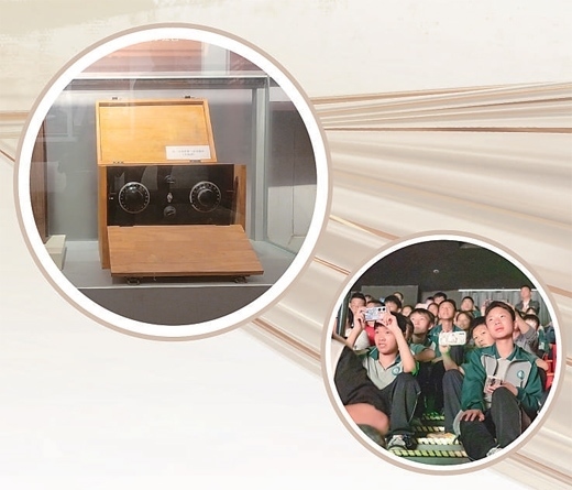 上圖:遵義會(huì)議會(huì)址展出的“半部電臺(tái)”復(fù)制品。下圖:學(xué)生們觀看《偉大轉(zhuǎn)折》演出。以上圖片均為遵義市委宣傳部提供