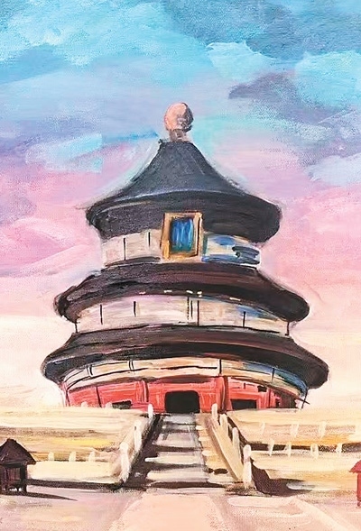 夕陽余暉中,新西蘭華裔青少年們在天壇祈年殿紅墻邊席地而坐,揮動畫筆,捕捉眼前美景?!跋﹃栂缕砟甑罡@壯麗,我希望通過我的畫筆展現(xiàn)出它的雄偉?!眳⒃L團(tuán)學(xué)生秦曉寓說。