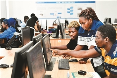 2024年9月,加納學生在日照職業(yè)技術學院智慧建造中心進行建筑軟件繪圖練習。
