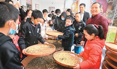 在福州教育學院附屬第二小學,臺灣青少年近距離領(lǐng)略中華傳統(tǒng)文化的獨特魅力。書法藝術(shù)的雅致、篆刻技藝的精妙、掐絲琺瑯的華麗、金箔畫書簽的韻味……每一項體驗都給臺灣青少年留下深刻印象。福州茉莉花茶傳統(tǒng)窨制工藝傳承人張子健現(xiàn)場展示了茉莉花茶制作技藝,不少臺灣青少年興趣盎然地跟著學習。兩岸青少年還攜手種下“連心樹”,期盼友誼之樹茁壯成長,未來見證彼此情誼的延續(xù)與發(fā)展。