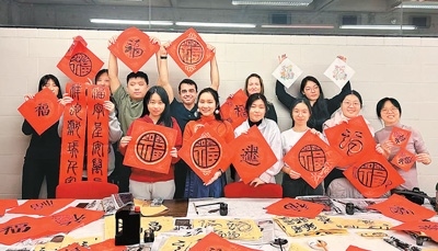 書畫社推動(dòng)了中國文化在校園里的傳播。秦思涵說:“今年除夕夜,我們?cè)趯W(xué)校擺攤賣春聯(lián)時(shí)發(fā)生了一件事情。一名女生問我,能否為她和她的室友們寫一副春聯(lián),里面包含她們的中文名字。有一名女孩不知道自己中文名字叫什么。她是一名扇舞舞者,我想了很久,為她起了名字‘葉舞翎’,并將其融入了春聯(lián)祝福。春聯(lián)寫好后,我們每個(gè)人都很開心。這樣的小事還有很多,越來越多人對(duì)我們的文化感興趣?!?/p>