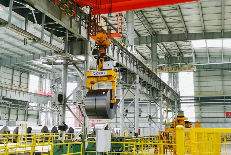 7月13日,內(nèi)蒙古包鋼全自動(dòng)智慧工廠——包鋼集團(tuán)金屬制造公司冷軋軋后庫內(nèi),吊運(yùn)裝備正在對鋼卷進(jìn)行吊運(yùn)入庫。這家智慧工廠,共有6臺行車、5組步進(jìn)梁、1組托盤運(yùn)輸鏈和1臺過跨轉(zhuǎn)運(yùn)平車。這座工廠采用的無人行車及智能庫管系統(tǒng),能夠通過模型算法實(shí)現(xiàn)行車智能調(diào)度、路徑規(guī)劃、垛位分配、自動(dòng)避障、多車協(xié)作等功能,智能化完成5條生產(chǎn)線所生產(chǎn)鋼卷的下線入庫、上線出庫、庫內(nèi)倒垛等,實(shí)現(xiàn)軋后庫內(nèi)所有行車和地面設(shè)備的自動(dòng)全無人作業(yè)和物料的實(shí)時(shí)跟蹤,是一座真正的24小時(shí)不用開燈的無人作業(yè)工廠。