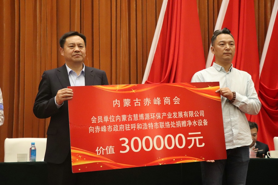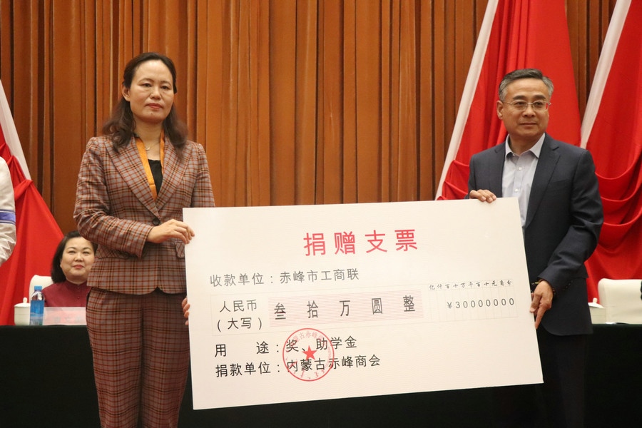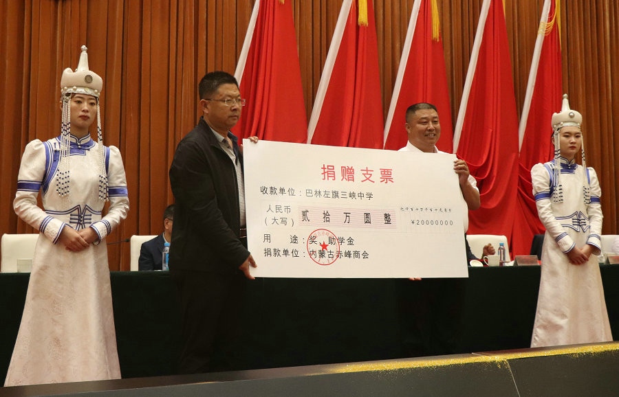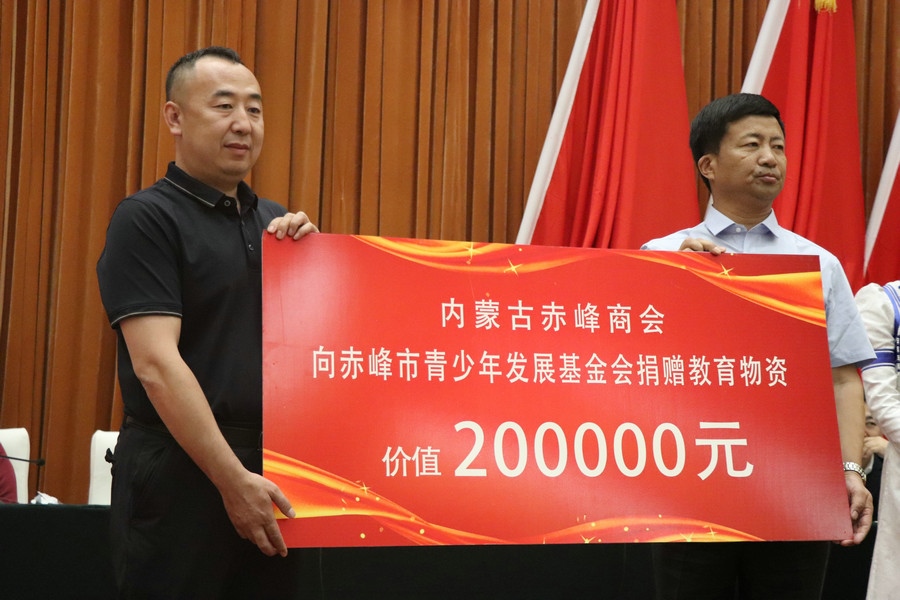 內(nèi)蒙古赤峰商會還聯(lián)合會員單位,利用商會成立之機,向家鄉(xiāng)赤峰市工商聯(lián)、巴林左旗三峽中學、赤峰市青少年發(fā)展基金會和赤峰市政府捐贈款物。
