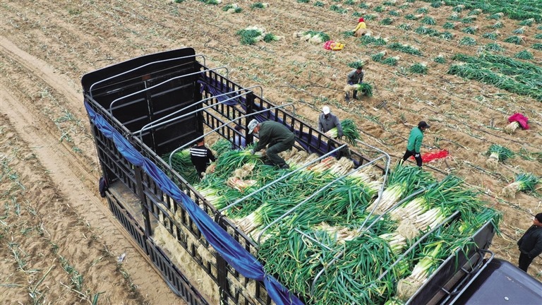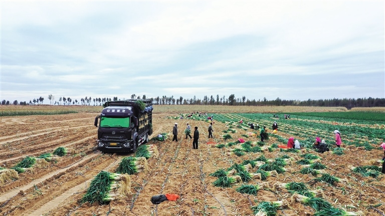 深秋時(shí)節(jié),通遼市奈曼旗沙日浩來鎮(zhèn)水泉嘎查大蔥種植基地一派繁忙的豐收景象,人們井然有序地拔蔥、捆綁、裝車,臉上洋溢著豐收的喜悅。