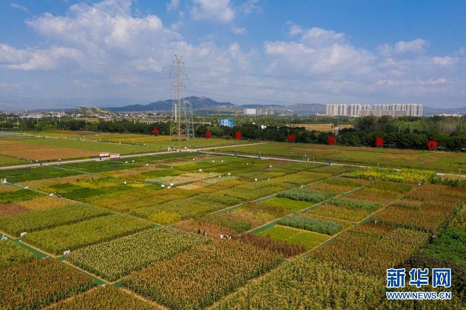 這是9月22日拍攝的位于山西省忻州市忻府區(qū)小檀村的雜糧科技展示園(無(wú)人機(jī)照片)。新華社記者 楊晨光 攝
