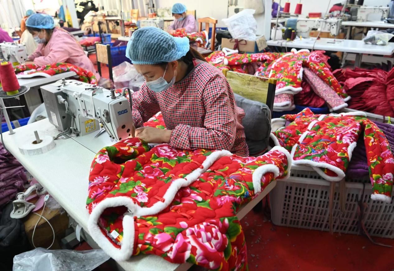 “把制作棉襖的傳統(tǒng)工藝重新挖掘出來,在款式和版型上加入現(xiàn)代的新元素,逐漸得到了市場(chǎng)的認(rèn)可和消費(fèi)者的喜愛。這些工人有些是脫貧戶、低保戶,通過我們這個(gè)平臺(tái)她們能得到一部分收入,我們希望吸納更多的家庭婦女加入到我們的隊(duì)伍中?!背匡w翔服飾加工廠負(fù)責(zé)人說。