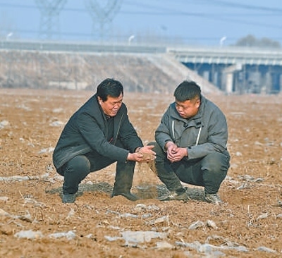 河北省永清縣劉街鄉(xiāng)農(nóng)戶(hù)在休耕地塊上查看土壤情況。 劉欣羽攝