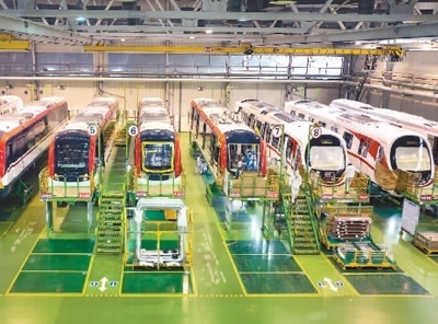 2023年2月14日,湖南省中車株洲電力機(jī)車有限公司城軌事業(yè)部總成車間,技術(shù)人員在加緊組裝城軌車輛,趕制國(guó)內(nèi)外客戶訂單。李 健攝(人民圖片)
