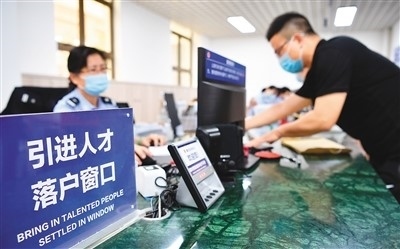 外省人員在海南省海口市公安局美蘭分局人口和出入境管理服務(wù)中心辦理人才落戶業(yè)務(wù)。 新華社記者 郭 程攝