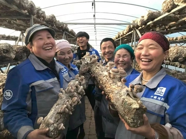 中建二局第二任駐村書(shū)記牛軍帥帶領(lǐng)村民種植香菇獲豐收。(受訪者供圖)