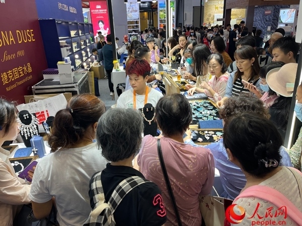 參觀者在第三屆消博會(huì)現(xiàn)場選購商品。人民網(wǎng)記者 張力洋攝
