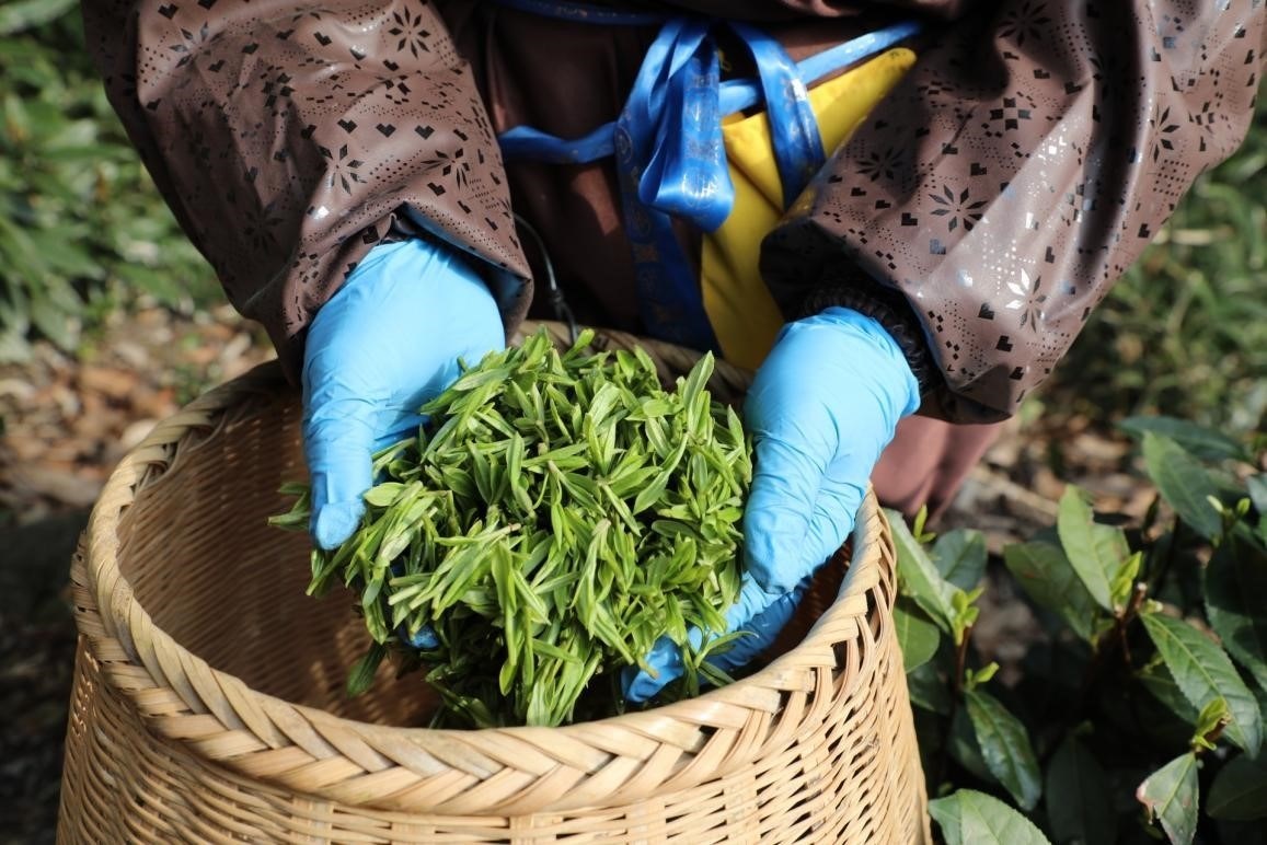 像林阿姨這樣熟練的采茶工,從早上七點(diǎn)多開始,一直采到下午五點(diǎn),預(yù)計(jì)能采4斤鮮葉,約可產(chǎn)出1斤的干茶?!敖衲甑牟枞~賣相好、顏色正、大小均勻。你看這葉片多漂亮!”林阿姨一邊說著一邊低頭忙碌。