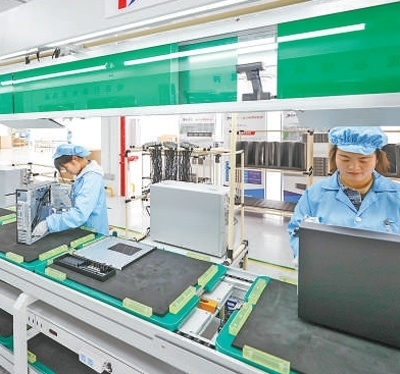 工人在畢節(jié)一家計算機生產企業(yè)產線上組裝產品。陳 曦攝(人民視覺)