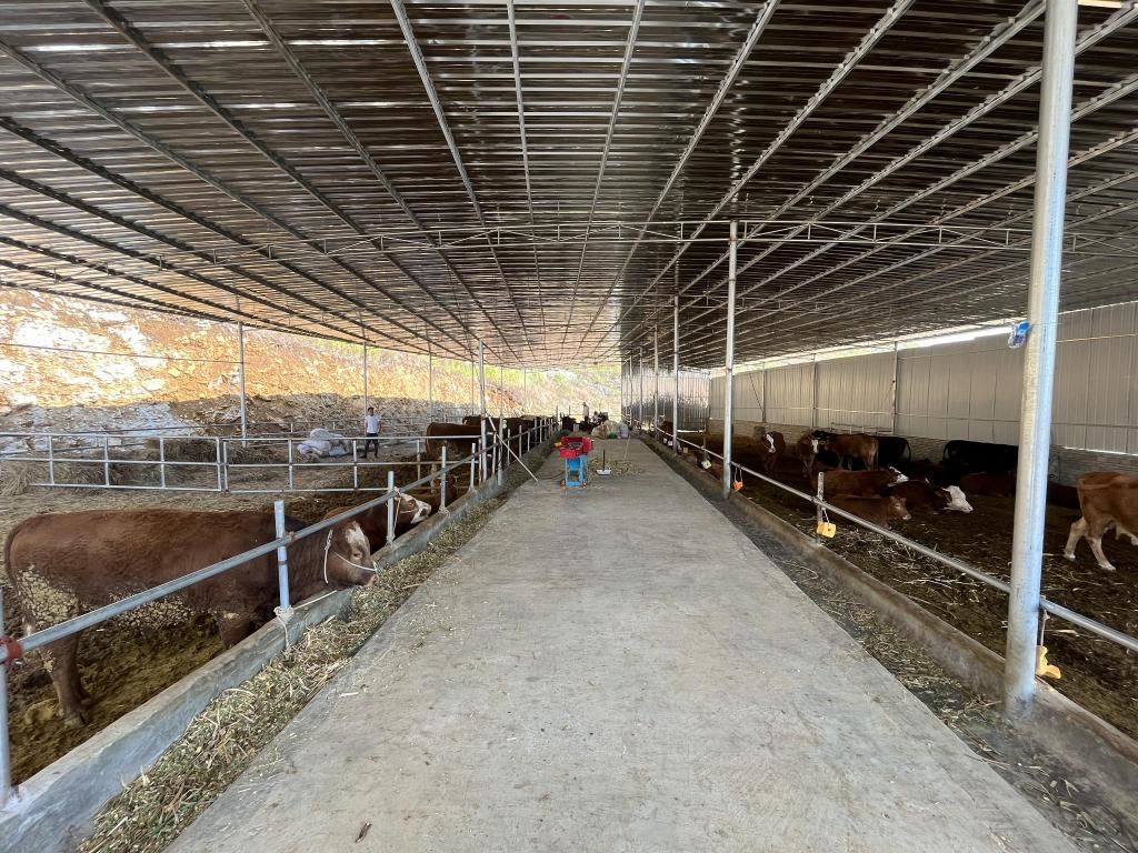 圖為2022年11月26日拍攝的貴州關(guān)嶺縣新鋪鎮(zhèn)臥龍村村民高志林的養(yǎng)牛場。新華社記者 李驚亞 攝