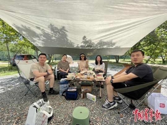 露營基地的露營者們。圖片均為中青報·中青網(wǎng)見習記者 裴思童/攝