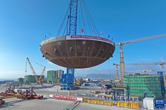 5月29日,在浙江省臺州市三門縣,三門核電二期工程4號機組核島鋼制安全殼底封頭順利吊裝就位。這是4號機組核島反應(yīng)堆廠房吊裝的首個大型模塊,標志著該廠房主體結(jié)構(gòu)施工開始。三門核電二期工程4號機組于3月22日開工,整個二期工程建成投產(chǎn)后,一、二期裝機總?cè)萘繉⑦_到500萬千瓦,年發(fā)電量預(yù)計可達到400億千瓦時。