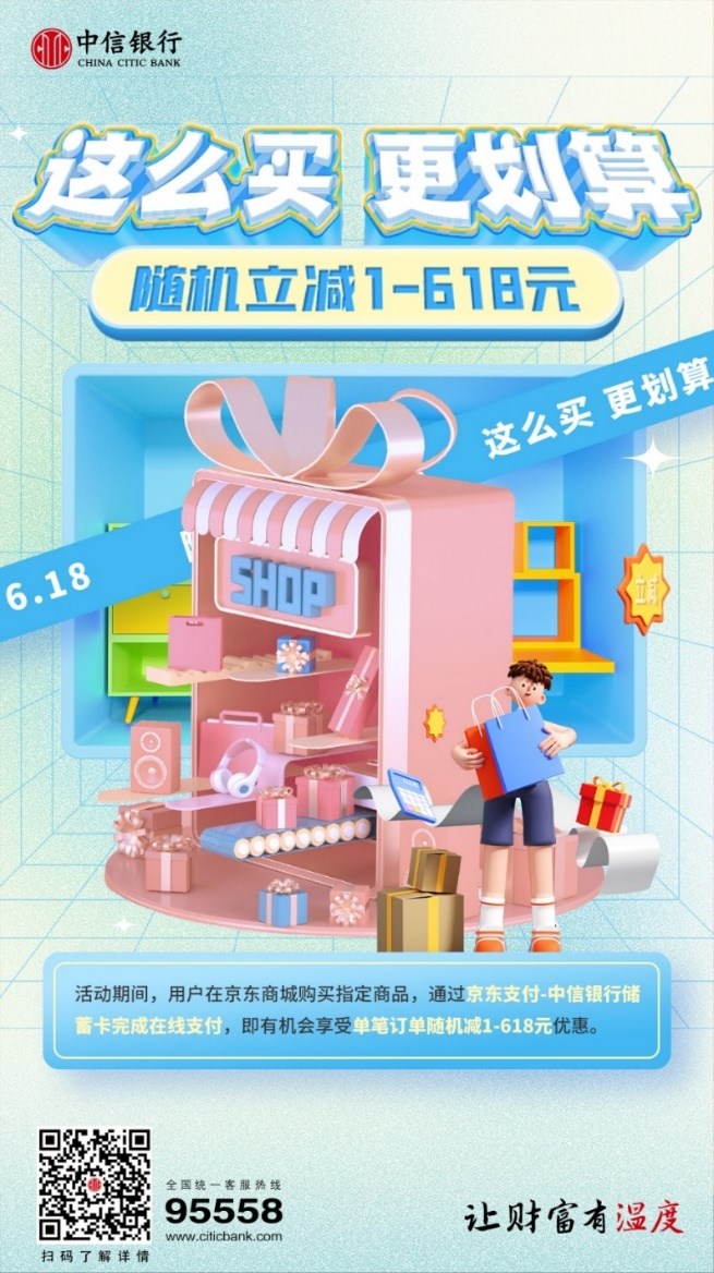 一年一度的“618”已拉開(kāi)序幕。中信銀行表示,將繼續(xù)豐富用卡環(huán)境,為客戶(hù)提供優(yōu)質(zhì)購(gòu)物場(chǎng)景和體驗(yàn),以“促消費(fèi)、惠民生”為使命,助力萬(wàn)千客戶(hù)享受超值生活。
