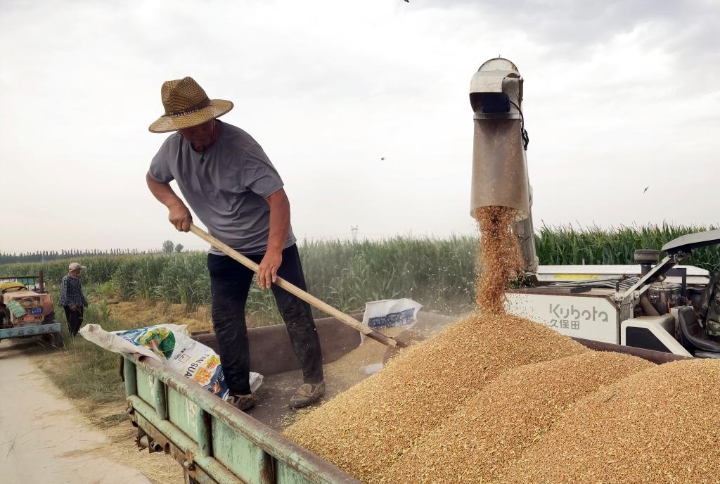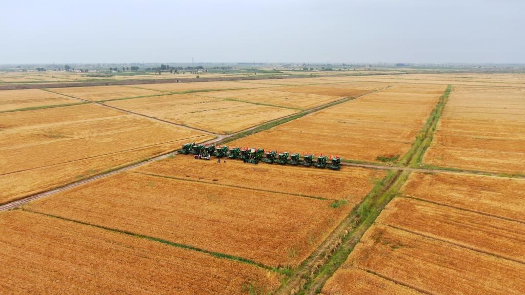 ??在金色麥浪涌動的示范創(chuàng)意園內(nèi),10多臺聯(lián)合收割機(jī)依次駛?cè)胱鳂I(yè)區(qū)。種糧大戶王義說:“今年我種了1016畝小麥,小麥長勢良好,麥穗大,顆粒比較飽滿,每畝產(chǎn)量預(yù)計超過1000斤?!?/span>
