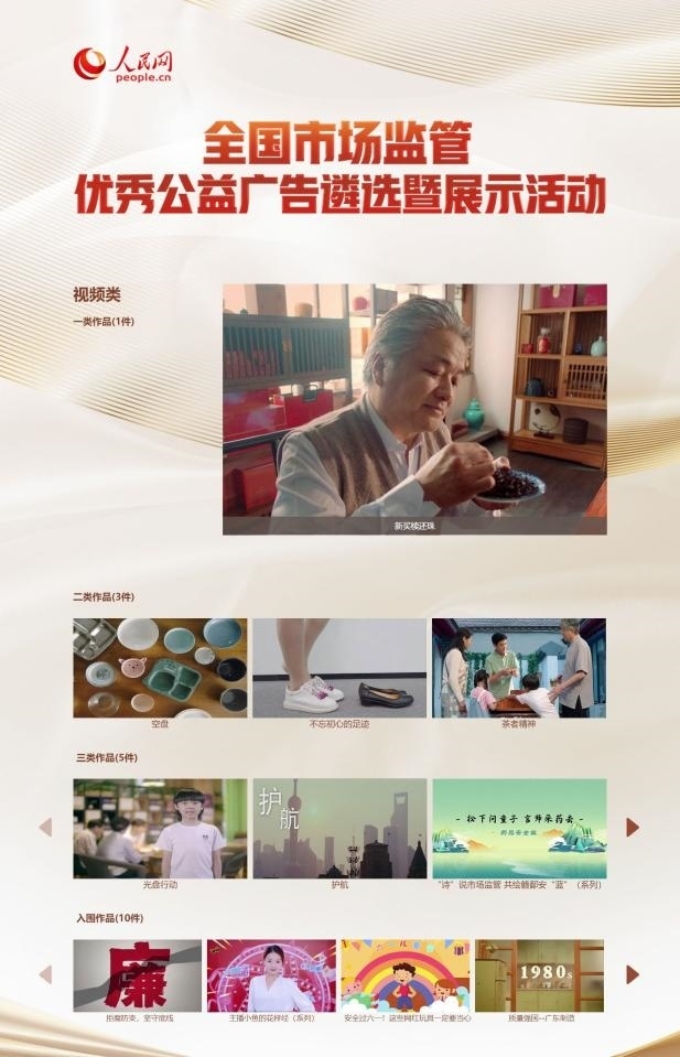 全國(guó)市場(chǎng)監(jiān)管優(yōu)秀公益廣告遴選暨展示活動(dòng)(頁(yè)面截圖)。