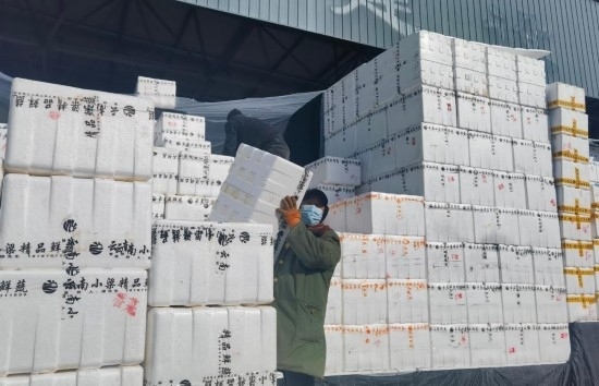 “車來嘍!”“往里倒,再倒,好,裝車!”盡管天氣寒冷,市場里卻是一片火熱的繁忙景象。從各地運來的蔬菜陸續(xù)進場,工作人員手腳麻利地將成箱的蔬菜從大車上卸下再裝上小車,隨后,這些蔬菜將運往寧夏各地小型批發(fā)市場和商超?!盀榱耸卟嗽谶\輸過程中不被凍壞,我們給蔬菜蓋了3層棉被,確實下了一番功夫?!鄙虘赳R伏珍說。