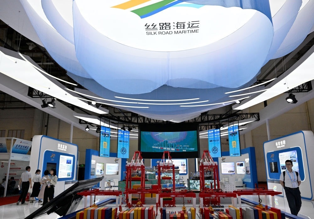 這是2024年9月8日拍攝的投洽會(huì)展現(xiàn)中國與“一帶一路”共建國家經(jīng)貿(mào)往來的絲路海運(yùn)展館。新華社記者 魏培全 攝