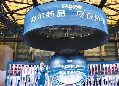 2024年中國家電及消費電子博覽會現場,京東攜手海爾等品牌首發(fā)數十款家電新品。受訪者供圖