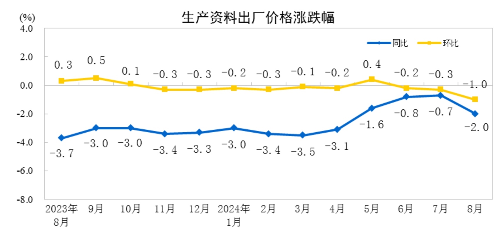 2024年8月工業(yè)生產(chǎn)者價(jià)格主要數(shù)據(jù)