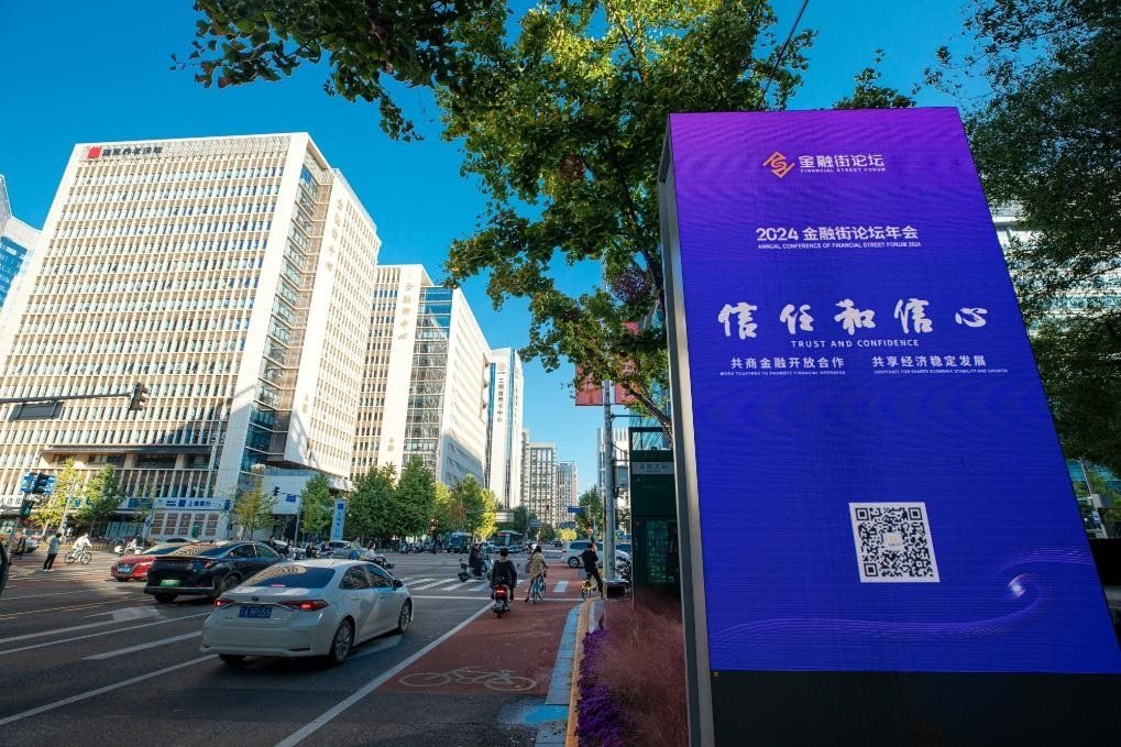 2024金融街論壇年會(huì)的會(huì)場(chǎng)外設(shè)置展示大屏。新華社發(fā)