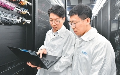工作人員在中國移動智算中心(哈爾濱)機房進行設(shè)備維護。采訪對象供圖