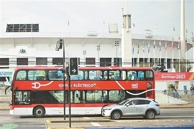 在智利首都圣地亞哥,一輛新能源公交車行駛在街頭。這條路線的十輛雙層新能源公交車由中國(guó)制造。近年來,中國(guó)制造的新能源汽車不斷進(jìn)入智利市場(chǎng),憑借綠色環(huán)保的特點(diǎn)和先進(jìn)科技的應(yīng)用廣受當(dāng)?shù)孛癖姷那嗖A。新華社記者 辛悅衛(wèi)攝