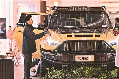 江西省南昌市構(gòu)建集智能網(wǎng)聯(lián)、銷售服務(wù)于一體的商超新能源汽車業(yè)態(tài)圈,促進(jìn)地方新能源汽車消費(fèi)。圖為顧客在南昌市紅谷灘區(qū)的一家大型商場的汽車展示銷售區(qū)咨詢選購新能源汽車。