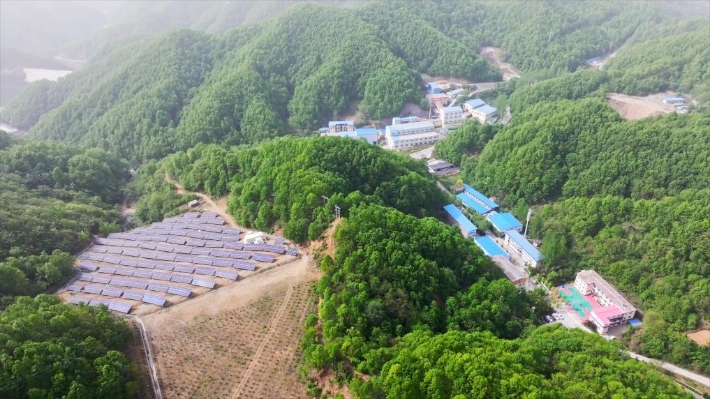 驅(qū)車駛?cè)肼鍖幙h伏牛山區(qū),在紫金礦業(yè)集團(tuán)旗下的洛陽坤宇礦業(yè)有限公司,已閉庫的尾礦庫上,光伏電板依山勢(shì)整齊排列,深藍(lán)色的面板與周邊翠綠的樹木交相輝映,科技感十足。