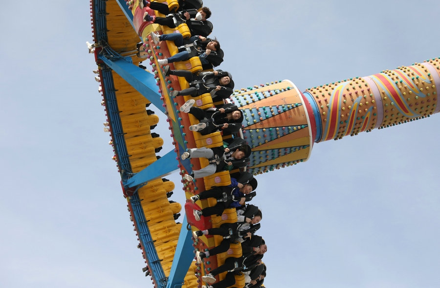 驚險(xiǎn)刺激的大擺錘引來(lái)陣陣尖叫 記者 張楊攝影